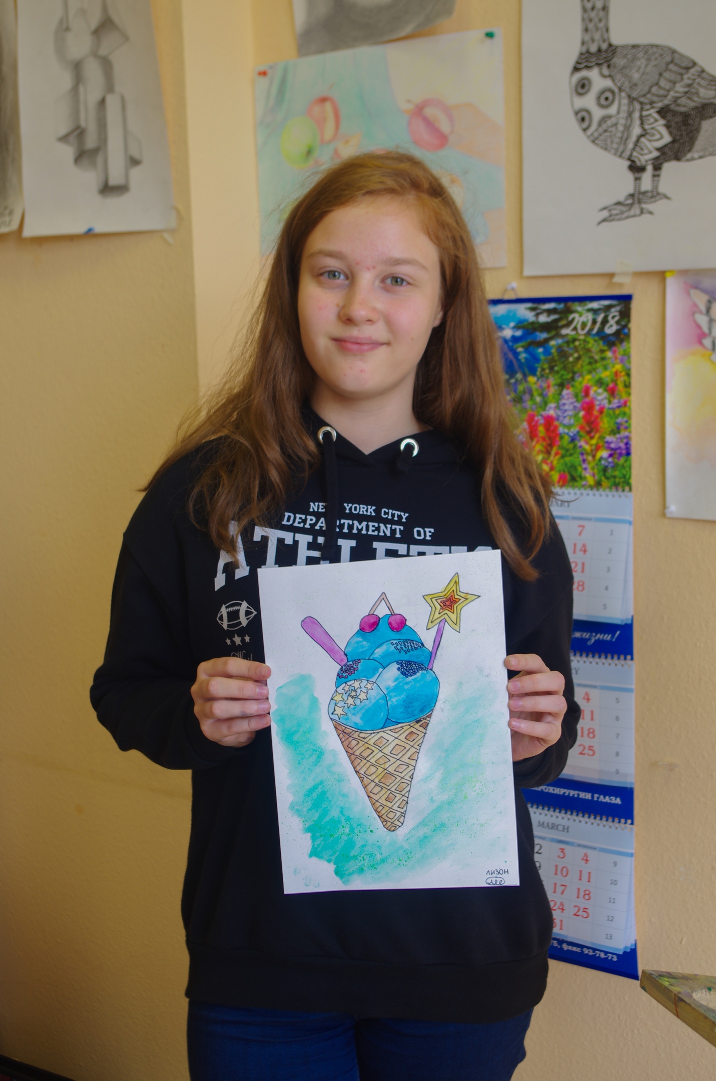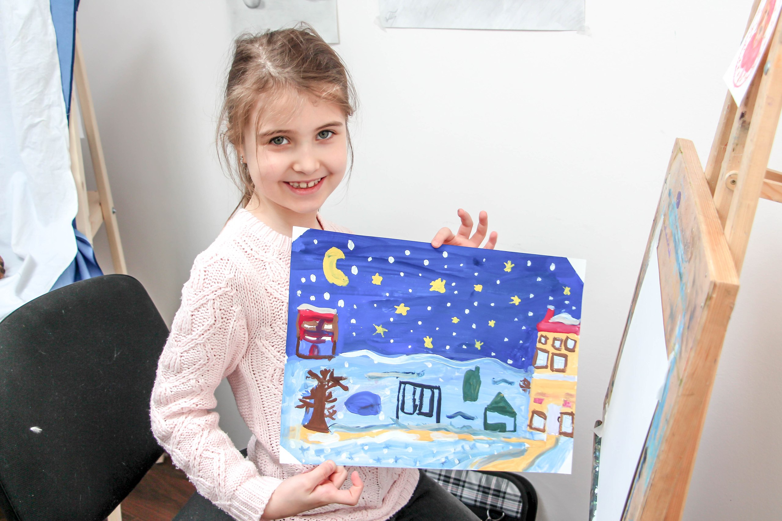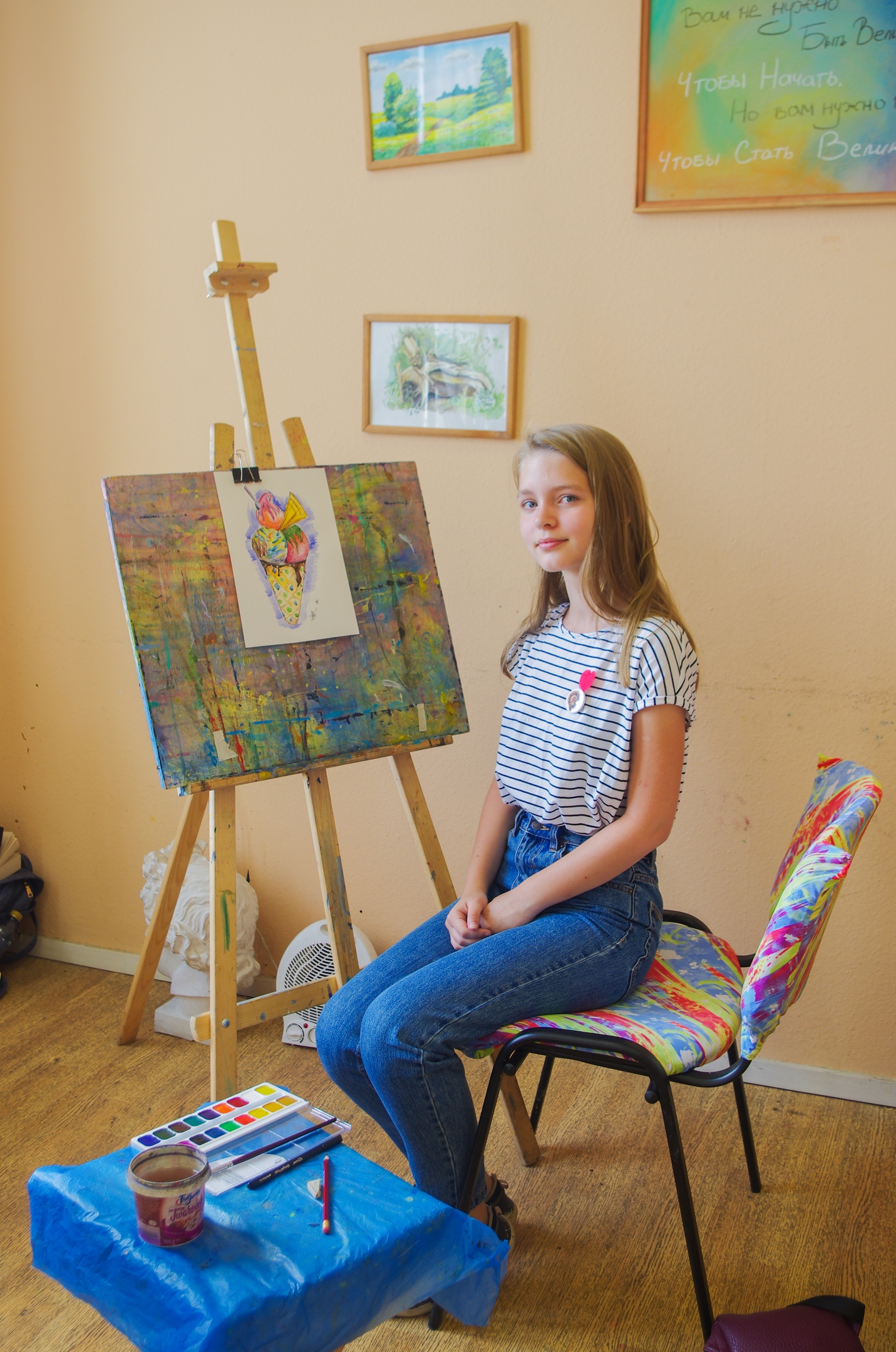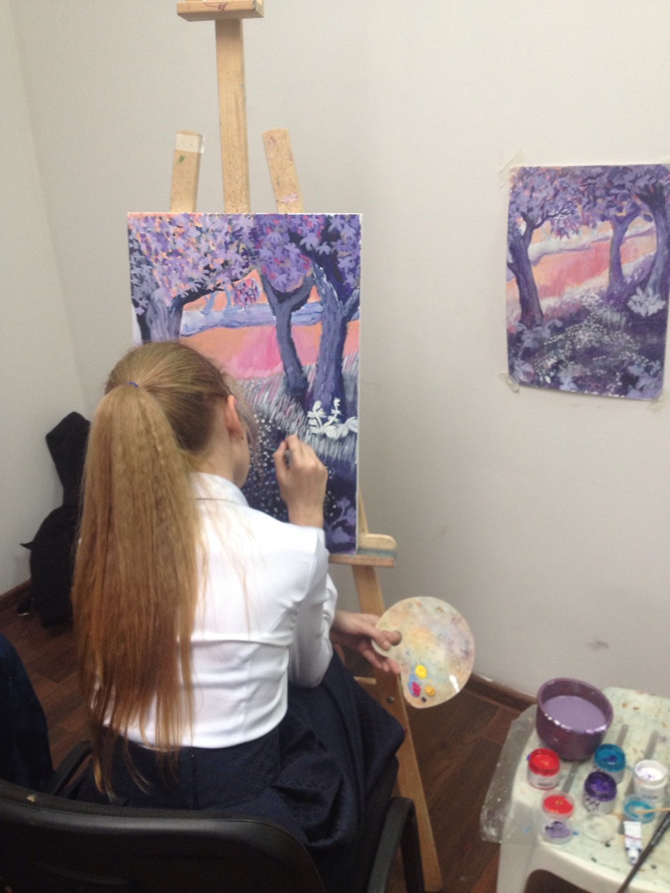 • Я очень рада, что мама привела меня в эту школу изобразительных искусств и буду продолжать учиться, потому что хочу стать великим художником.